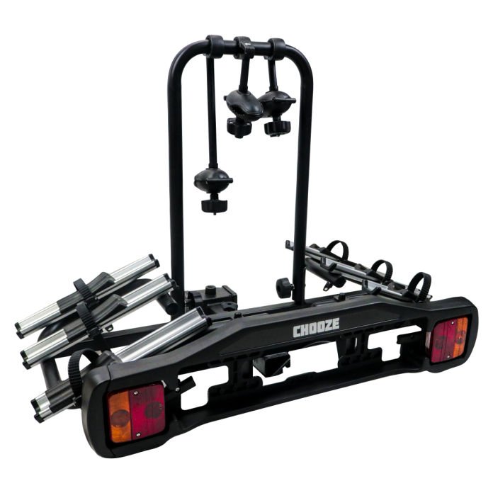 Chooze BaseRide 3 proporciona acesso total ao porta-malas, mesmo com as bicicletas no lugar. Pode ser dobrado, adquirindo um tamanho compacto para ser guardado no porta-malas.