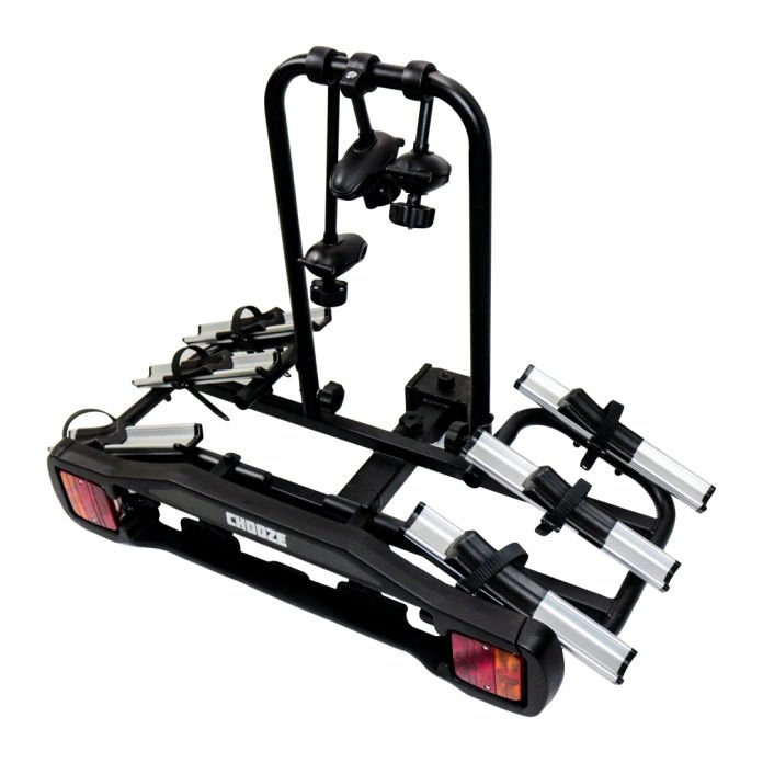 O Chooze BaseRide 3 é o suporte ideal para transportar bicicletas, montado na esfera do engate, totalmente dobrável, compacto e fácil de usar. Confeccionado em aço carbono, alumínio e acabamento em plástico resistente. Tem estrutura forte para transportar até 3 bicicletas com muita segurança - o produto suporta peso de até 45kg. Para usá-lo é necessário que o veículo não possua nenhum outro acessório na traseira que impeça sua instalação, como por exemplo, pneu tipo estepe fixo na tampa traseira.